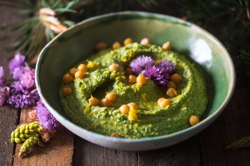 Sosna świetnie się łączy z wszelakimi strączkami więc pomysł na hummus z jej aromatem wydał mi się oczywisty;) Po pracy, zmęczony (z kuchni wyszedłem aby do kuchni wejść;)) poszedłem w dzicz po męskie kwiatostany sosny a potem pognałem do domu przygotować hummus na kolację.