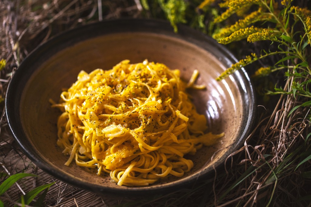 Wykończyć makaron można świeżo zmielonym pieprzem i kwiatami nawłoci;)