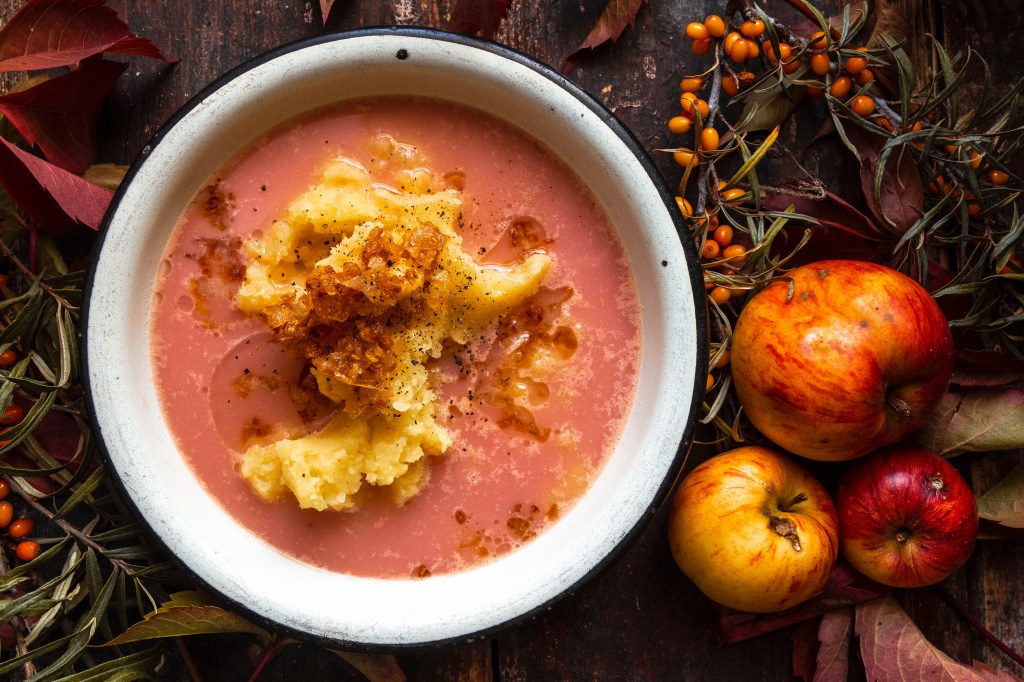 Oczywiście musiałem pokombinować i w mojej wersji pojawiają się dzikie jabłka i rokitnik który mocniej zakwasza Nam zupę 😉