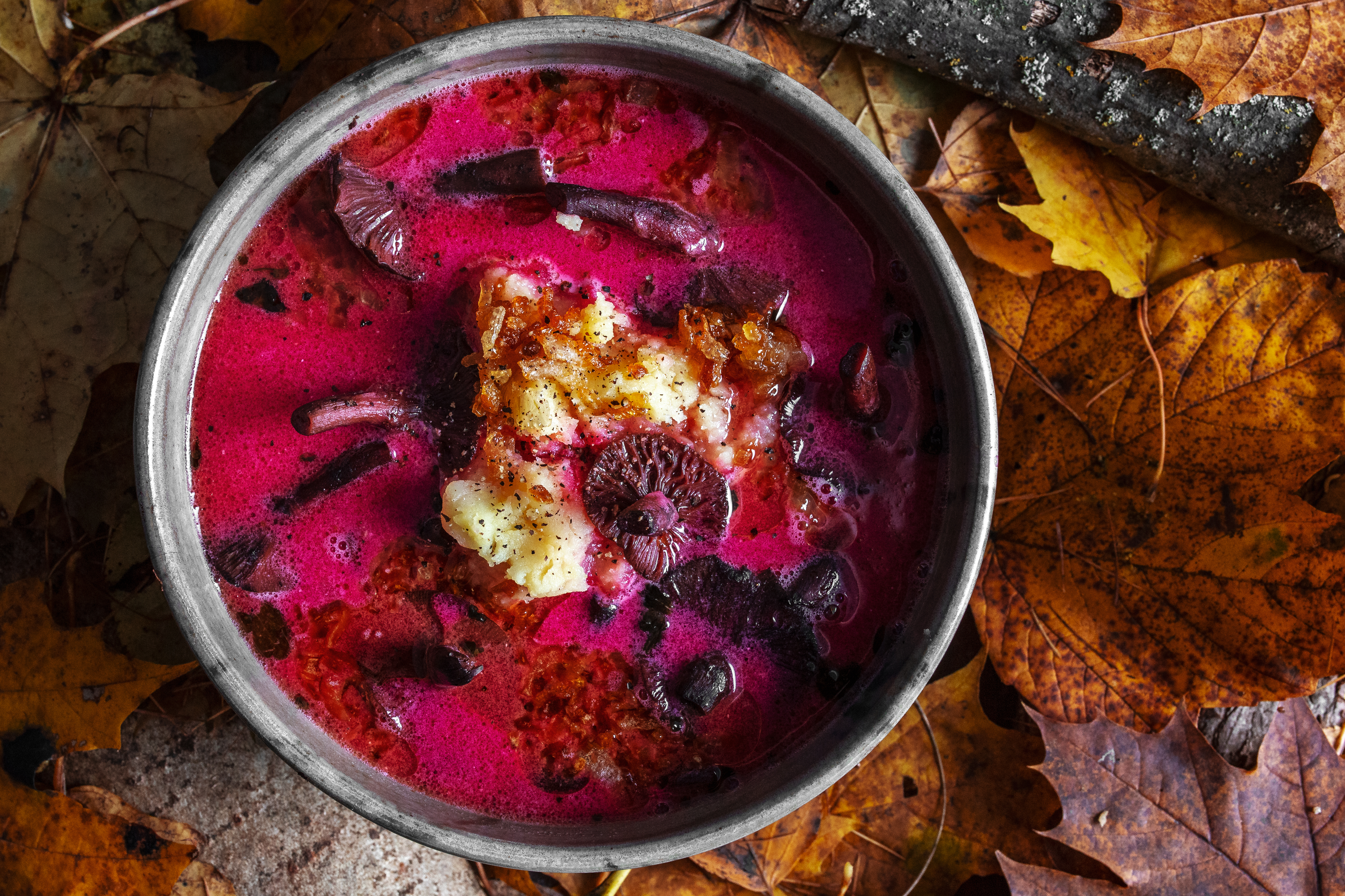 Były pierogi z opieńkami które już Wam pokazywałem, były marynowane opieńki ale był też czerwony barszcz ugotowany nieco inaczej i właśnie na tych grzybkach 😉