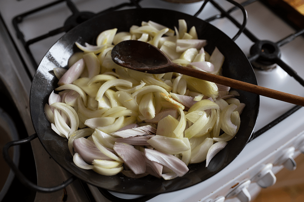 Wrzucamy ją na masło, solimy i szklimy na małym ogniu ok 5 min.