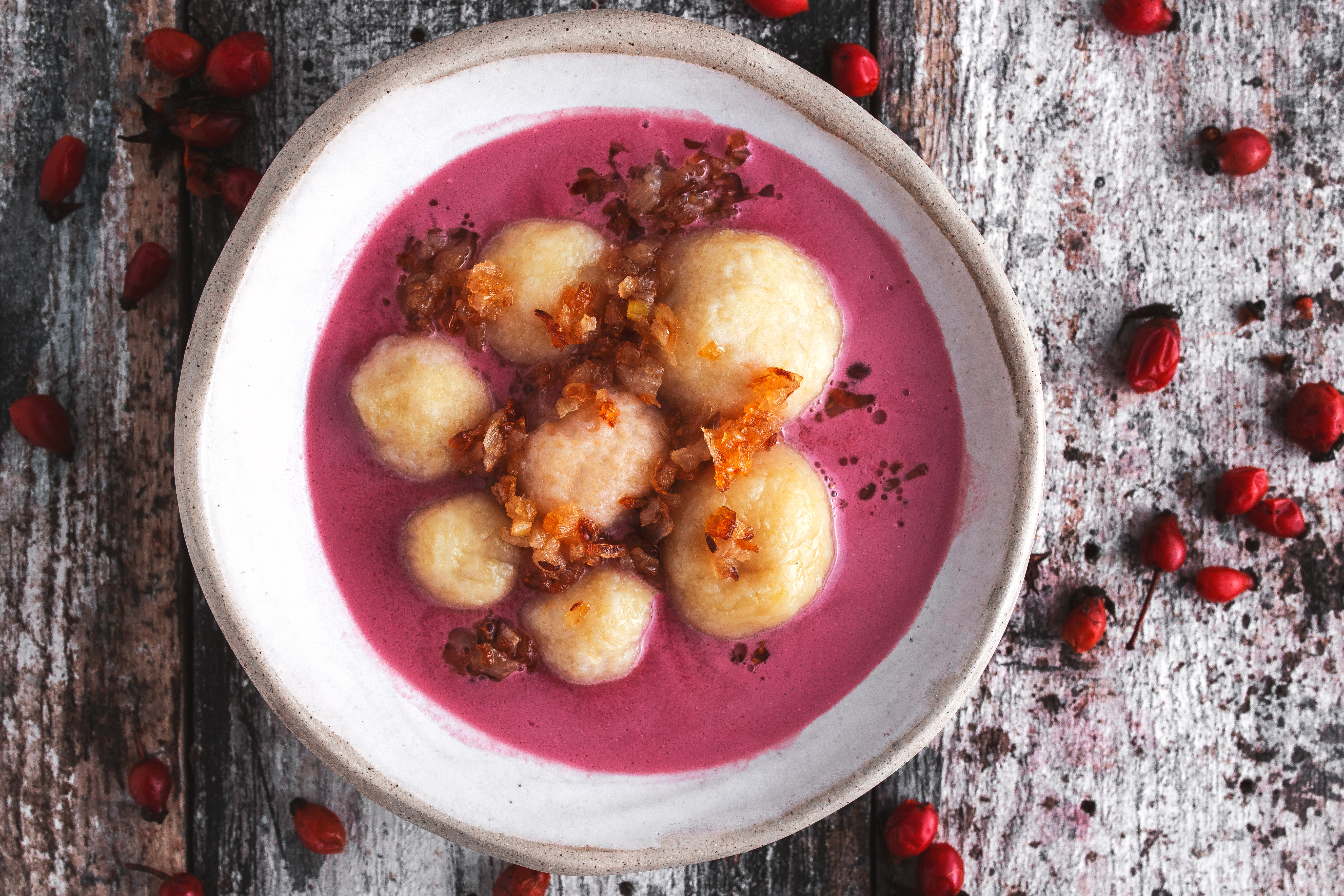 Ja natomiast postanowiłem swój przepis oprzeć na starym polskim Garusie czyli kwaśnej zupie z owoców zabielonej śmietaną podawanej z ziemniakami i okrasą;)