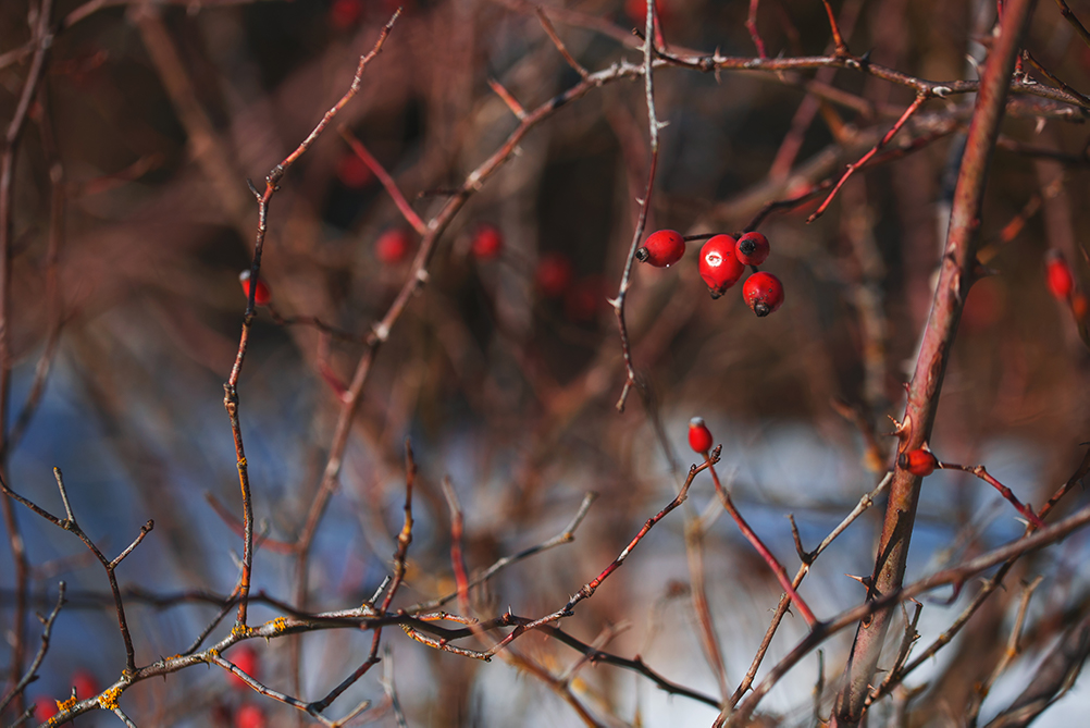 Dzika róża a właściwie jej owoc to składnik który towarzyszy mi każdej późnej jesieni i zimy. Pijam zaparzone z niej herbatki, zjadam owoce prosto z krzaka i używam ich w kuchni choćby jako konfitury. 😉