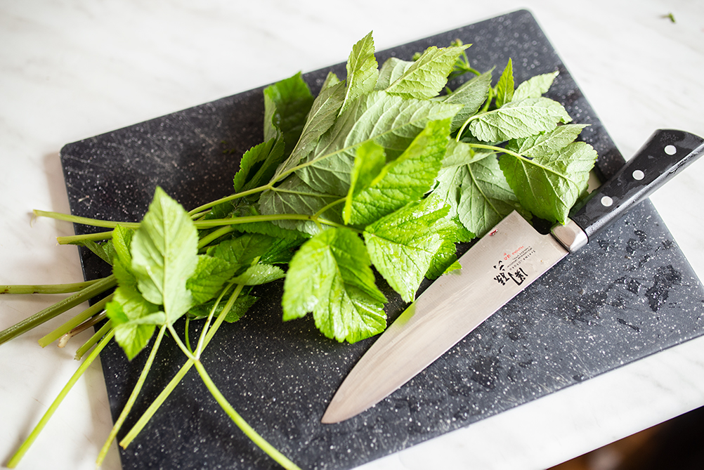 Podagrycznik i szczaw siekamy drobno podobnie jak cebulę.