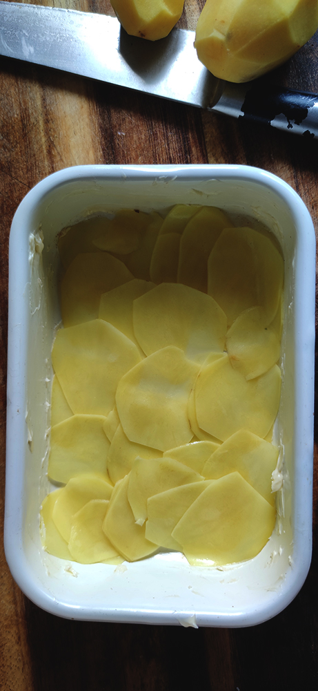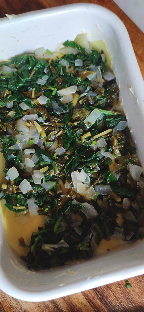 Ja do swojej zapiekanki poza kartoflami dodałem również dwa gatunki dzikich warzyw – szczaw i podagrycznik które świetnie uzupełniają ziemniaki.