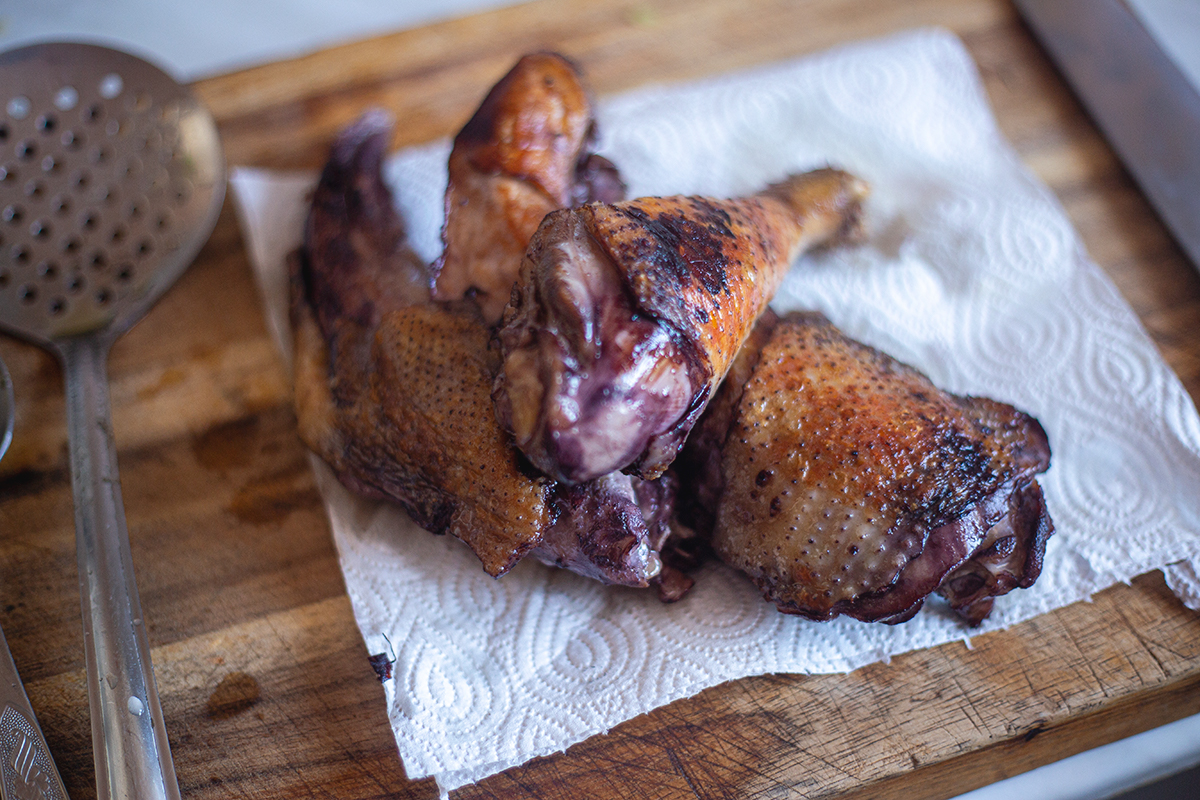 - gęsi tłuszcz (powinien być boczek lub pancetta ale mi nie udało się kupić nic dobrego w tym temacie więc postawiłem na gęsi smalec)