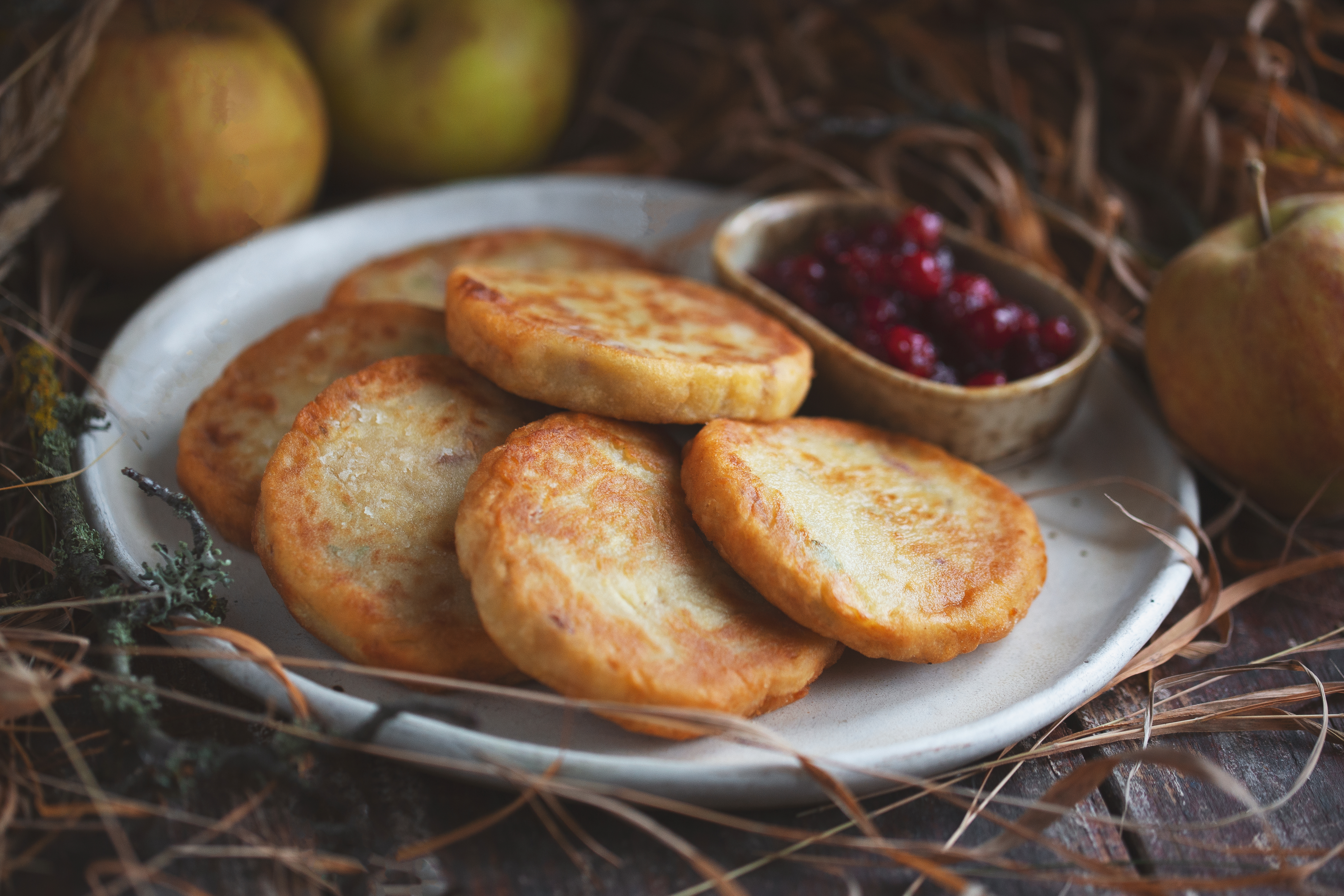Tym razem duet ten będzie na słodko i w formie pysznych smażonych placuszków, dodałem do nich mojej ukochanej macierzanki gdyż idealnie pasuje ona zarówno do jabłka jak i ziemniaka.