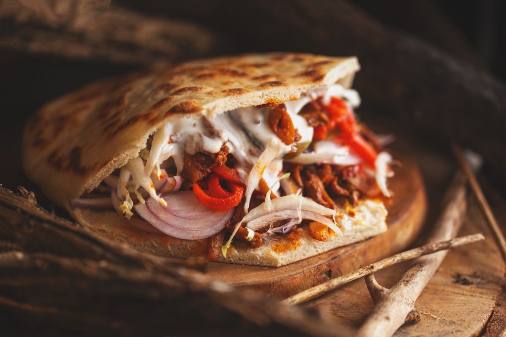 Ja swój kebab złożyłem z kapusty pekińskiej, sosu jogurtowego, pieczonej papryki z zalewy, kiszonego ogórka, cebuli oraz boczniaków ale Wy możecie zrobić go z takimi dodatkami jakie Wam smakują najbardziej 😉