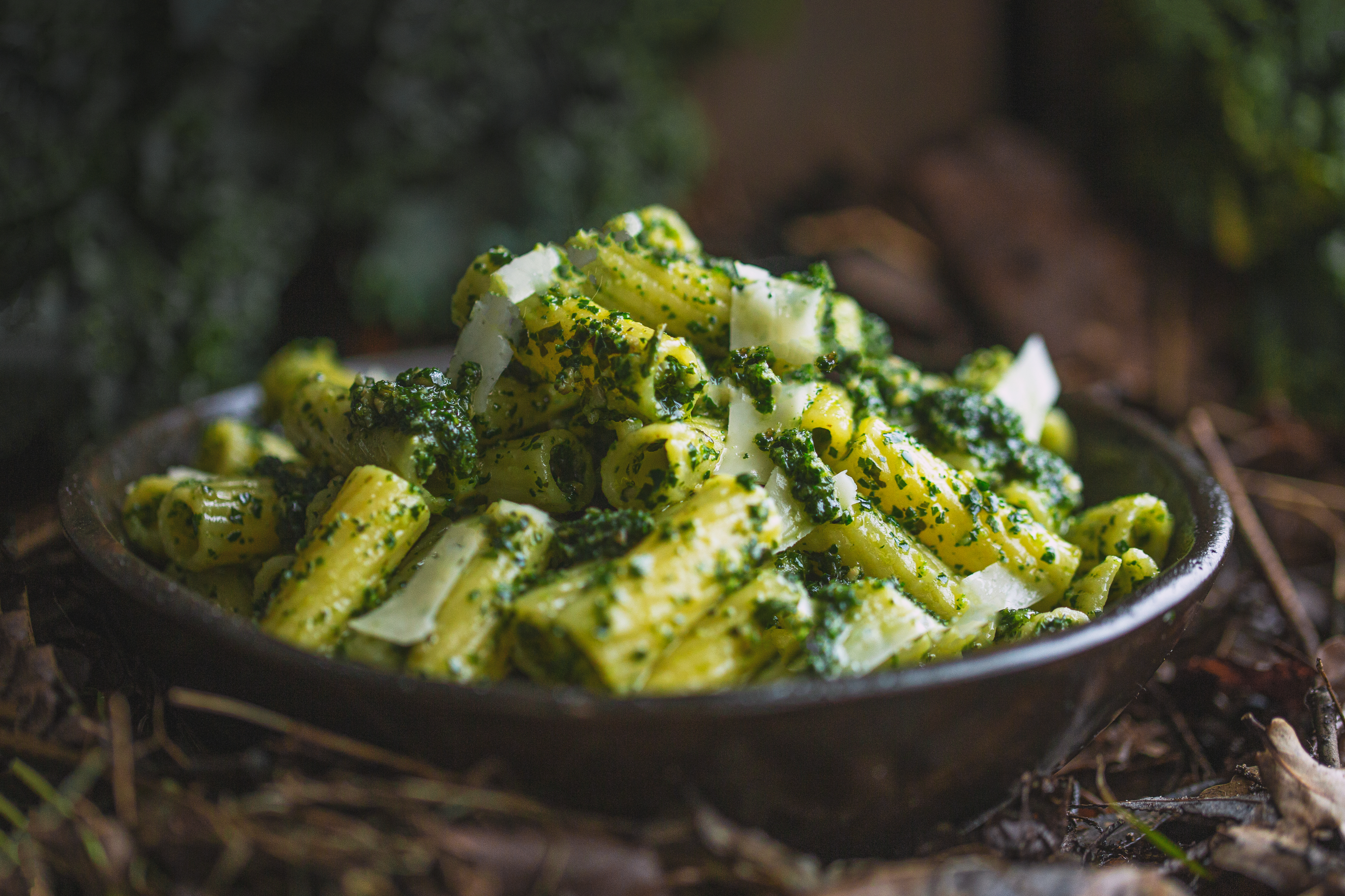 Gotujemy w osolonej wodzie makaron aż będzie miękkawy, wylewamy go na sito i kiedy nie zdąży jeszcze całkiem obcieknąć przerzucamy go do miski z pesto, podlewamy tam odrobinę wody z gotowania się makaronu mieszamy wszystko tak aby makaron pokrył się pesto i stworzył nam się sos.