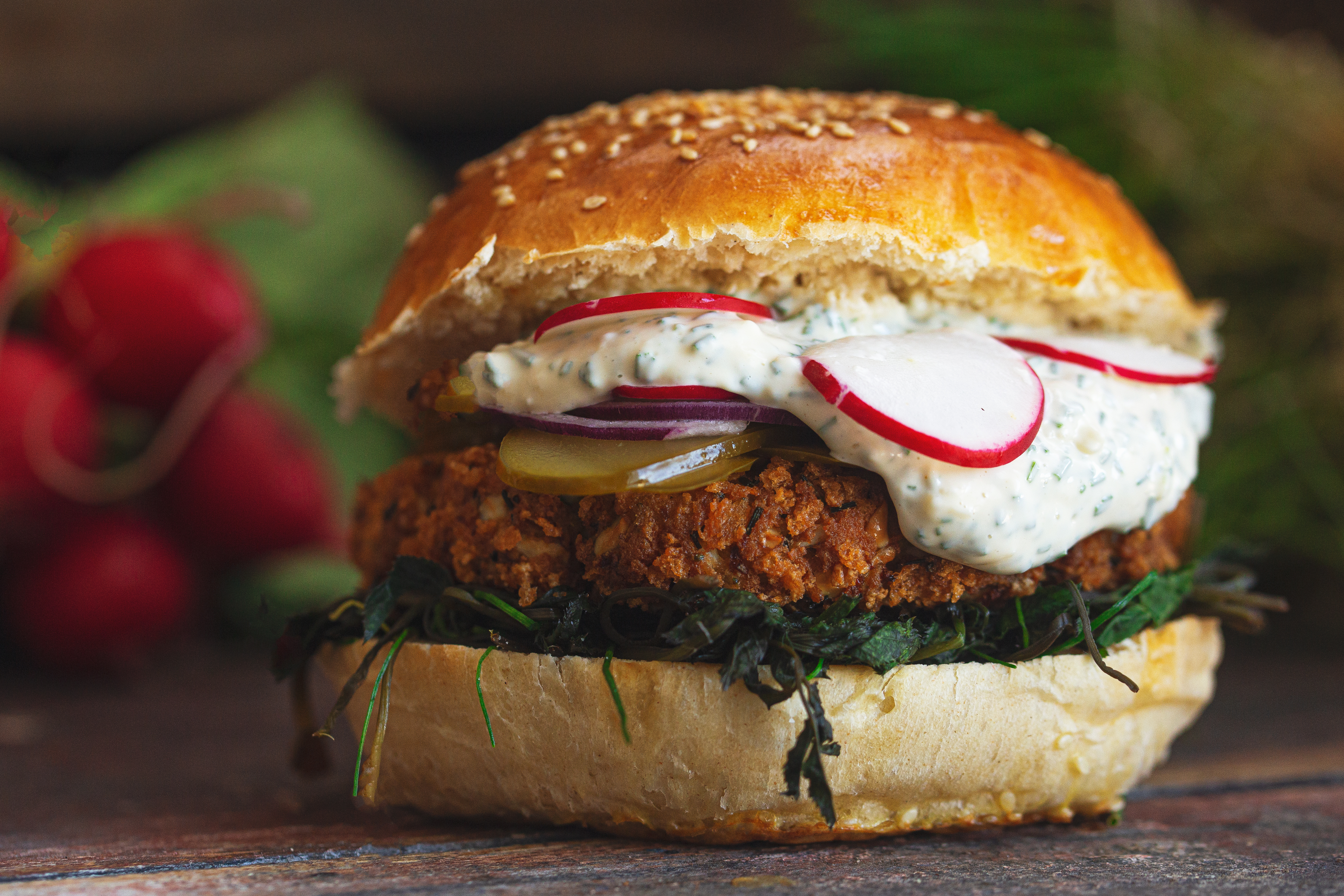 Na patelni podgrzewamy oliwę, dodajemy tam posiekany czosnek i chwilkę smażymy podagrycznik, tak jak szpinak. Podagrycznik kładziemy na spód burgera;)