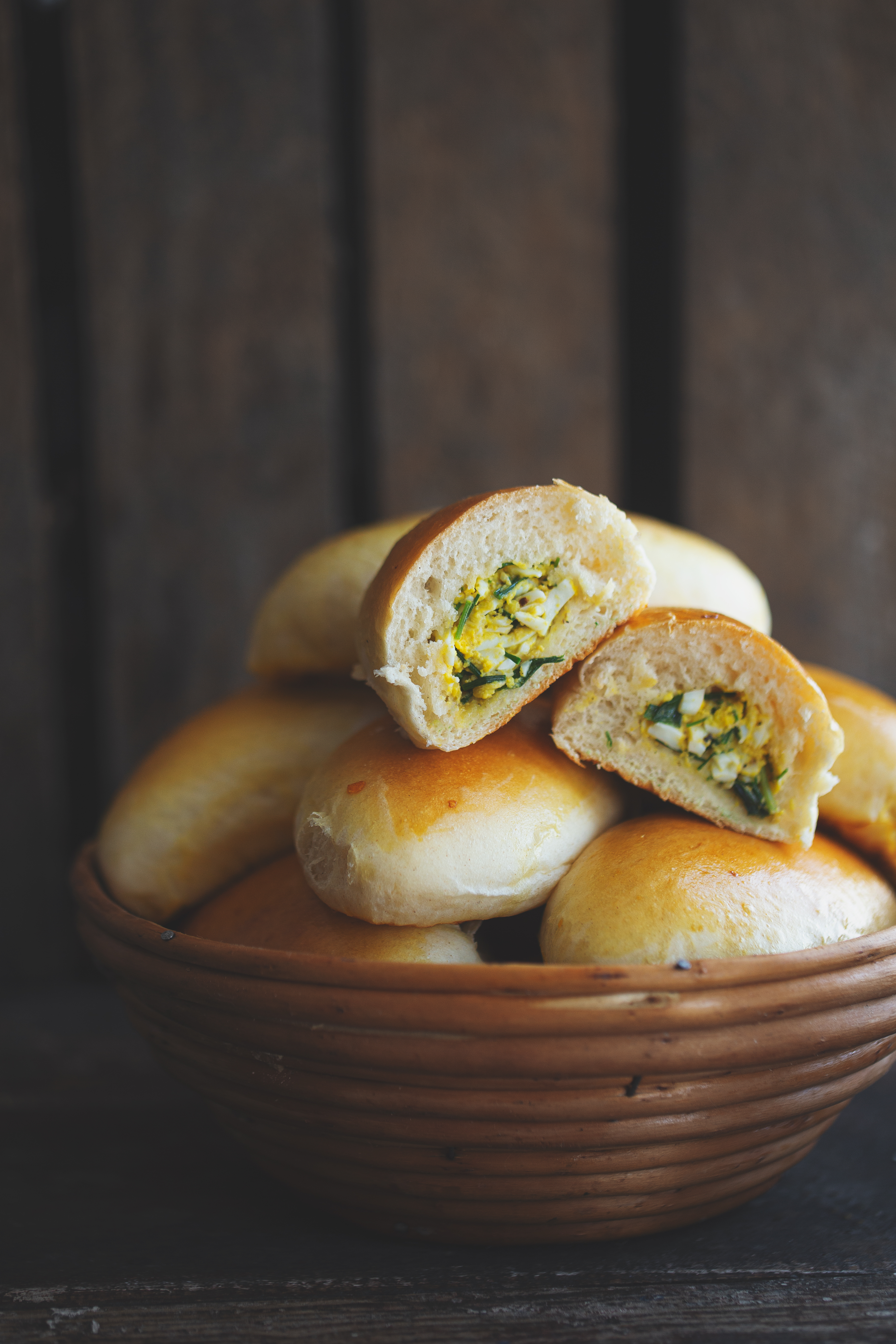 Bułeczki wychodzą leciutkie i pyszne a dziki szczypiorek je pięknie podkręca swoją ostrością;)