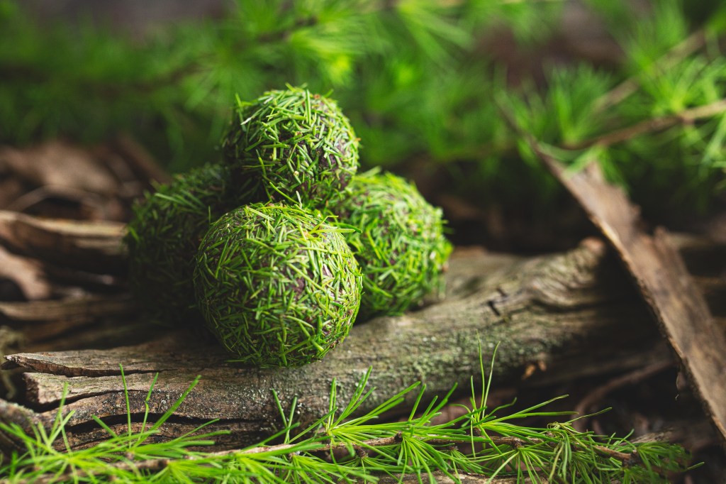 Igły modrzewiowe siekamy na drobno i obtaczamy w nich nasze trufle.