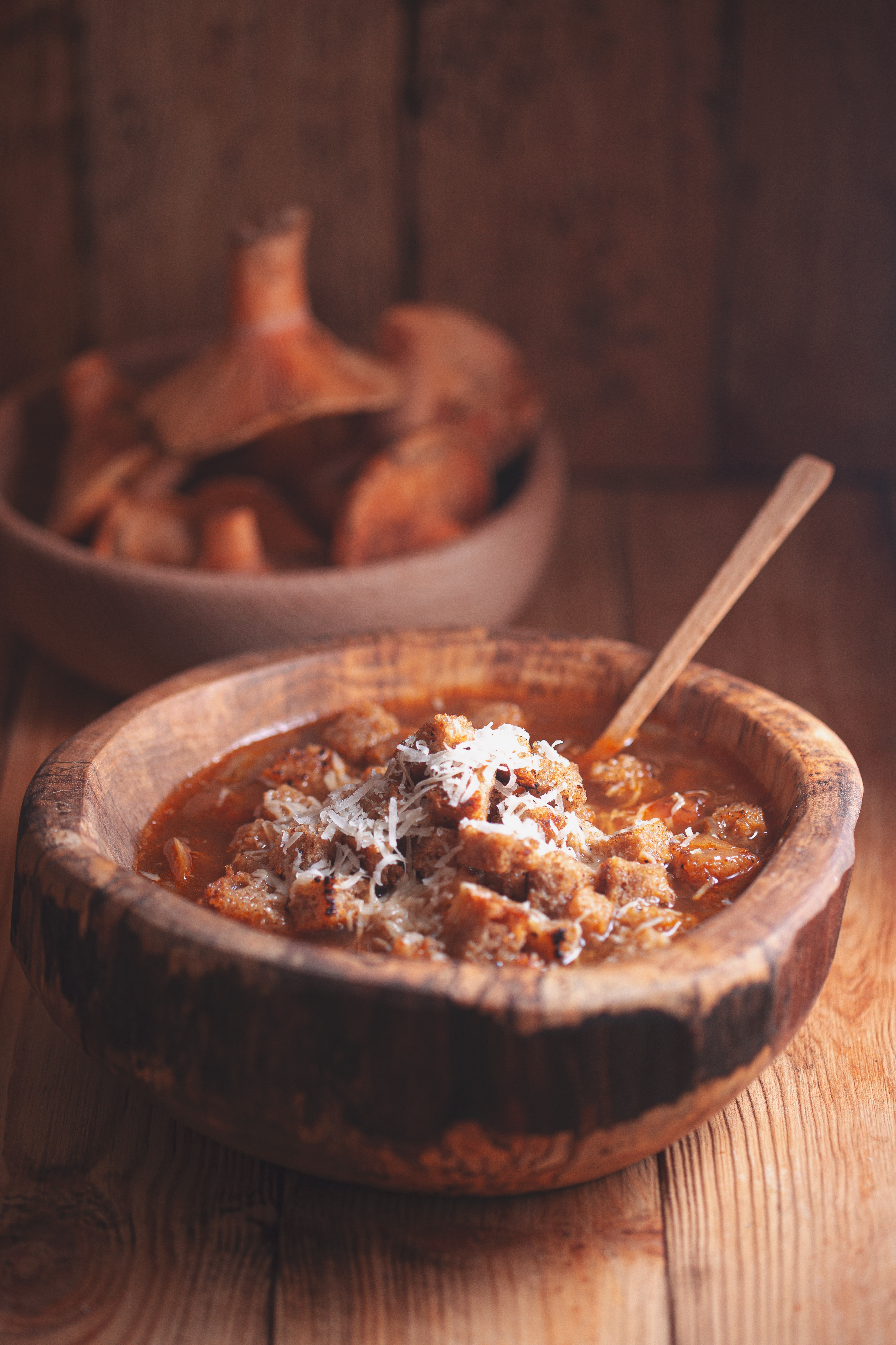 Idąc tym tokiem myślenia, z nadmiarem mleczajów w lodówce wpadłem na pomysł ! Połączyć klasyczną zupę cebulową z tymi grzybami. To musi się udać.