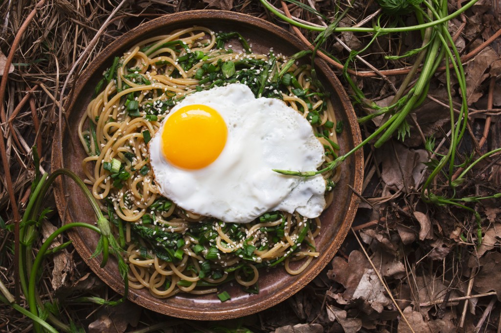 Danie kończymy jajkiem, szczypiorem i sezamem;) Gotowe.