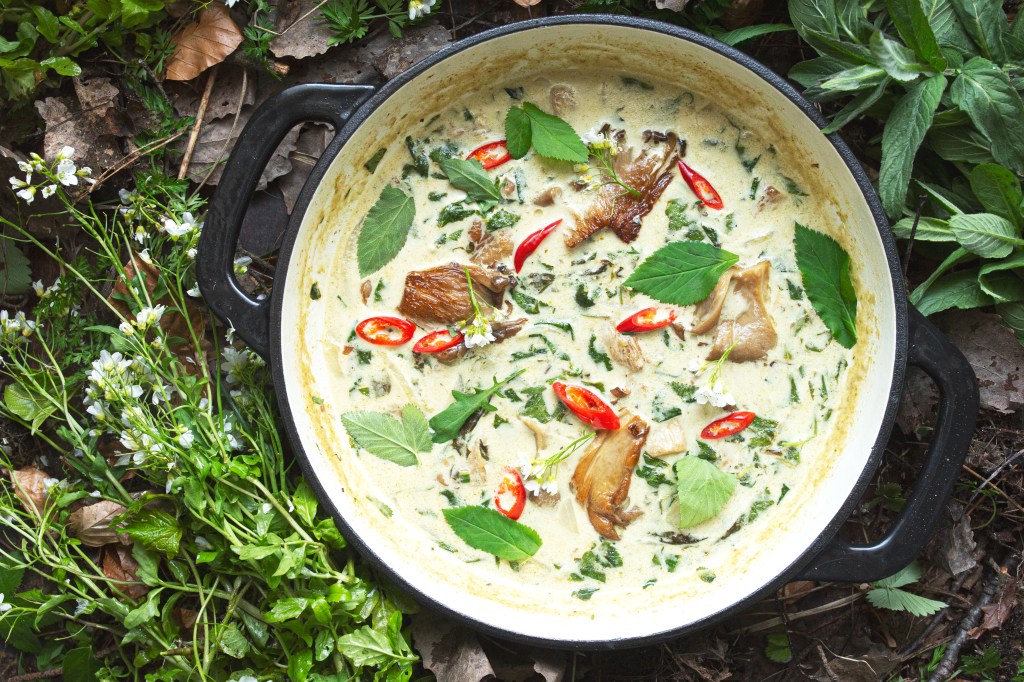 Wierciło mnie to gdyż wydawało mi się, że takie zielone curry jest idealną formą na smaczne przemycenie dzikich roślin do nowoczesnego „domowego” obiadu. Choć zdecydowanie moim konikiem jest kuchnia Europy to odważyłem się pokazać Wam to danie. Wszystko wokół jest pięknie zielone więc to curry składa się w logiczną całość ![]()