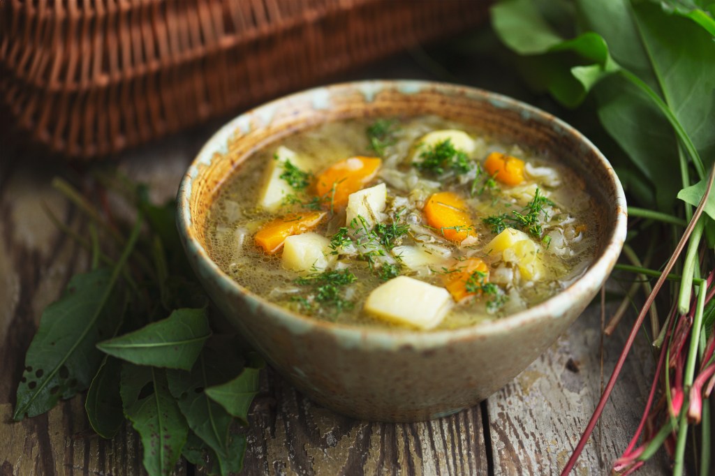 Wszystko ma się gotować do miękkości, kiedy ziemniaki są bardzo miękkie czas na szczaw.