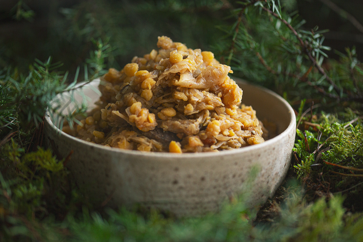 JAŁOWCOWA KAPUSTA Z GROCHEM I GRZYBAMI