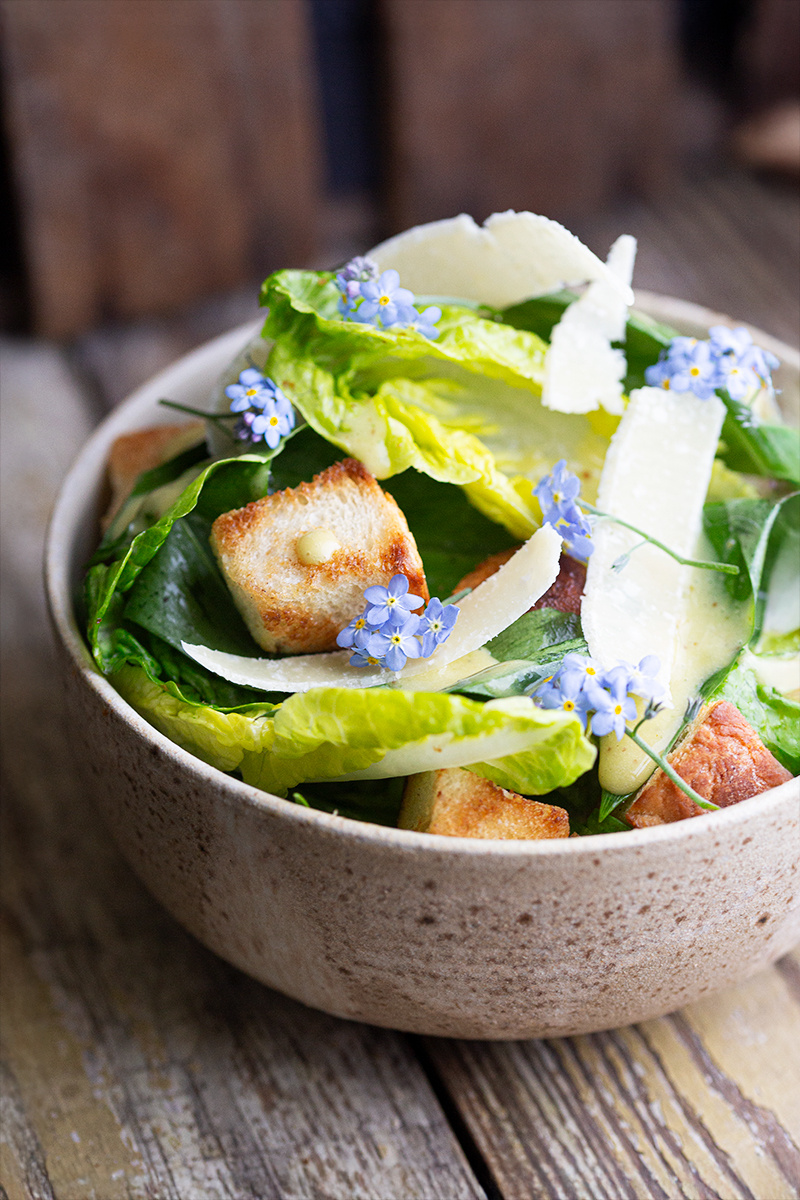 Na szczęście na blogu mogę sobie pisać i robić co chcę więc pokaże Wam dziś klasyczną sałatkę cezar z małym twistem w postaci liści czosnku niedźwiedziego w dresingu i samej sałatce;)
