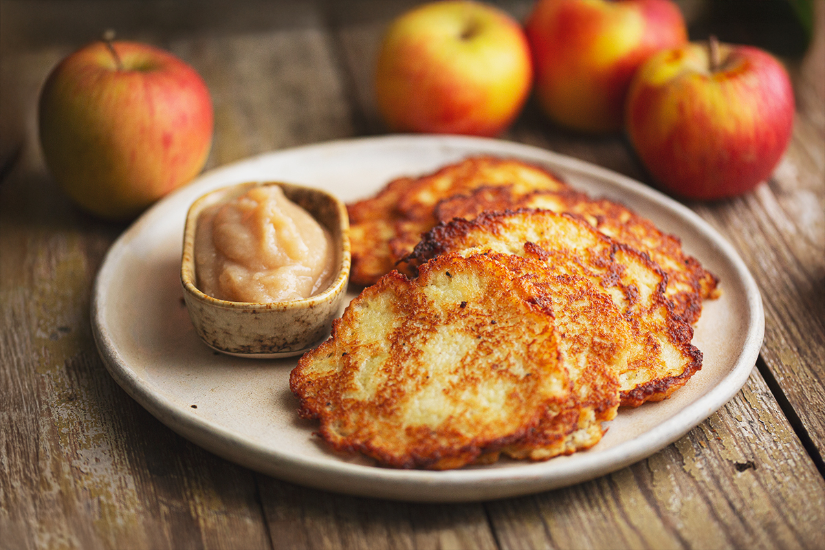 Jakiś czas temu, szukając sposobów na nadmiar papierówek, trafiłem na to danie. Okazało się, że to klasyka kuchni niemieckiej, znana tam jako Kartoffelpuffer mit Apfelmus. Placki ziemniaczane z kwaśnym musem jabłkowym jada się tam na jarmarkach, szczególnie zimą, a w Polsce – choć rzadziej – również można spotkać tę kombinację.