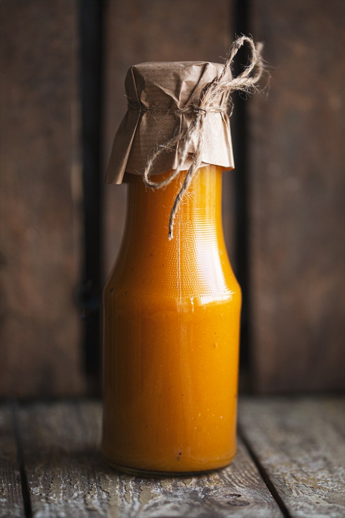 Jeśli ketchup dziwnie nam smakuje i nie możemy go doprawić (ilości octu, cukru, soli zależą mocno od owoców), polecam wziąć sklepowy ketchup, spróbować go i dążyć do odtworzenia słodkości, słoności i kwaśności tego produktu.