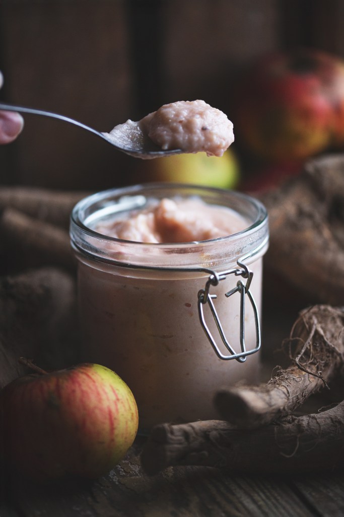 Tak przygotowany chrzan z jabłkami doskonale pasuje do karpia, śledzi, wędlin lub jajek. Jest delikatniejszy od klasycznego chrzanu i potrafi naprawdę zaskoczyć gości.